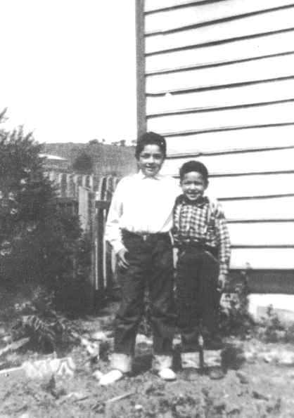 En el fondo se divisan las tablas de la casa que nuestro padre levantó a punta de inteligencia carpintera y de músculo incansable. Allí fuimos felices, con inocencia de niños rurales. Los pantalones cortos denotan el "calor" del verano magallánico, y nuestras sonrisas la alegría de no saber aún los males del mundo.