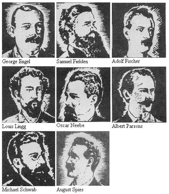 El 3 de mayo de 1886 la policía abrió fuego en contra de un grupo de huelguistas de la fábrica McCormick Reapers Works, matando a cuatro e hiriendo a muchos otros. Los anarquistas llamaron a una manifestación para el día siguiente en la Plaza Haymarket para protestar por estos asesinatos. A pesar de la naturaleza pacifica de esta nueva concentración, la policía volvió a hostigar a los trabajadores. Esta vez, mientras los oradores ya bajaban de la improvisada tarima una bomba explotó en medio del pelotón de policías. Un policía murió instantáneamente y muchos fueron heridos. La policía respondió disparando en contra de los desarmados trabajadores, produciendo un muerto y cientos de heridos.